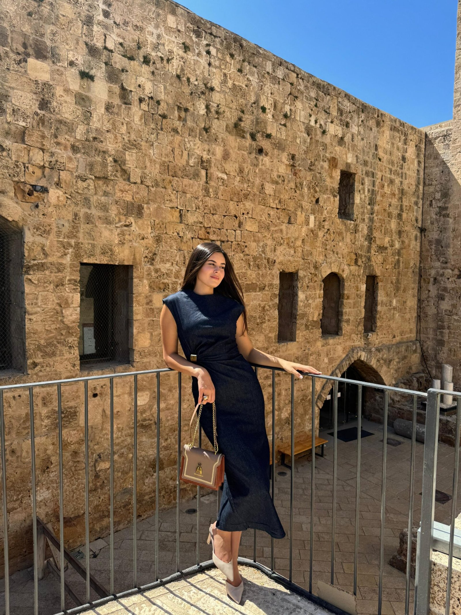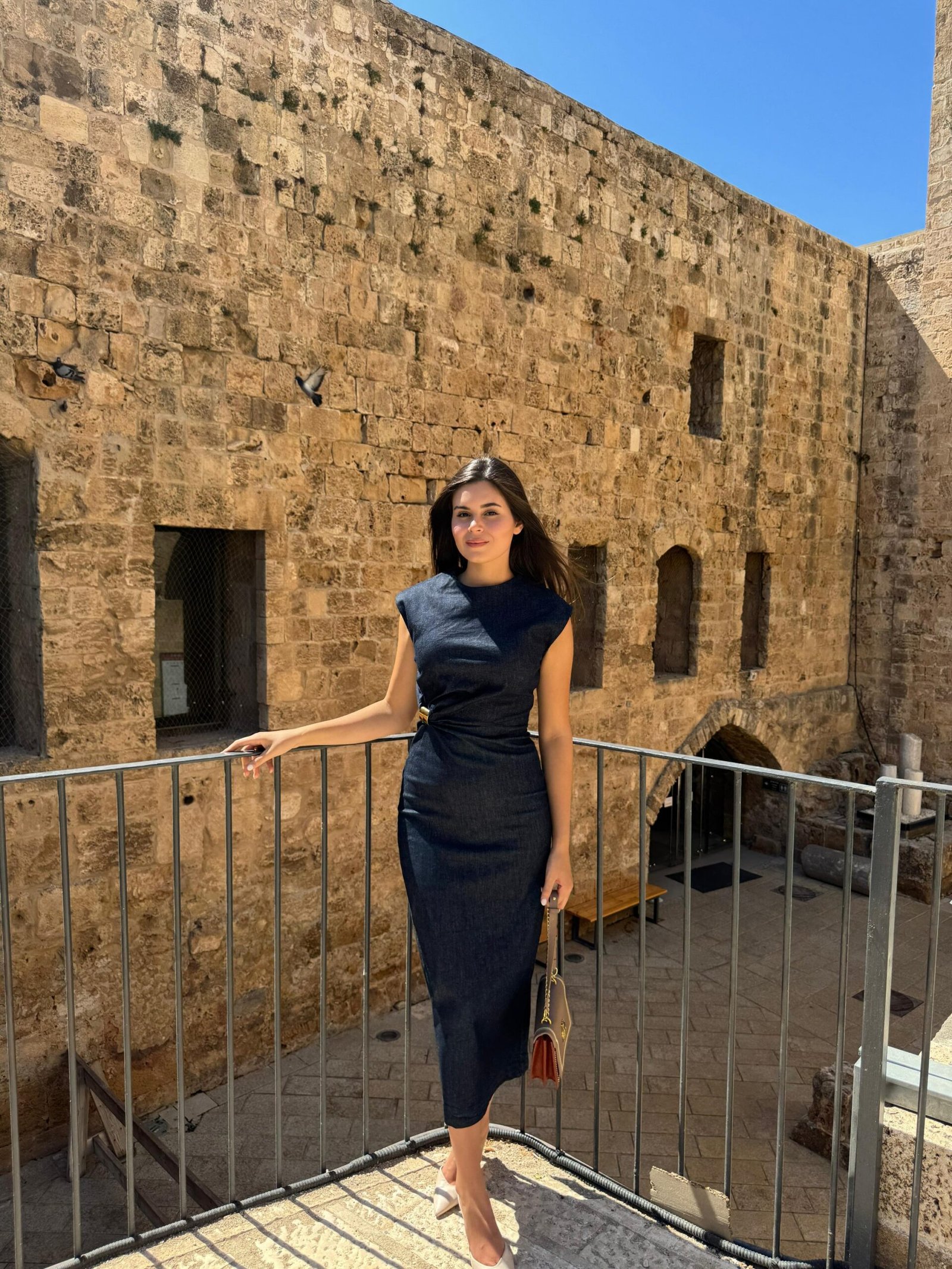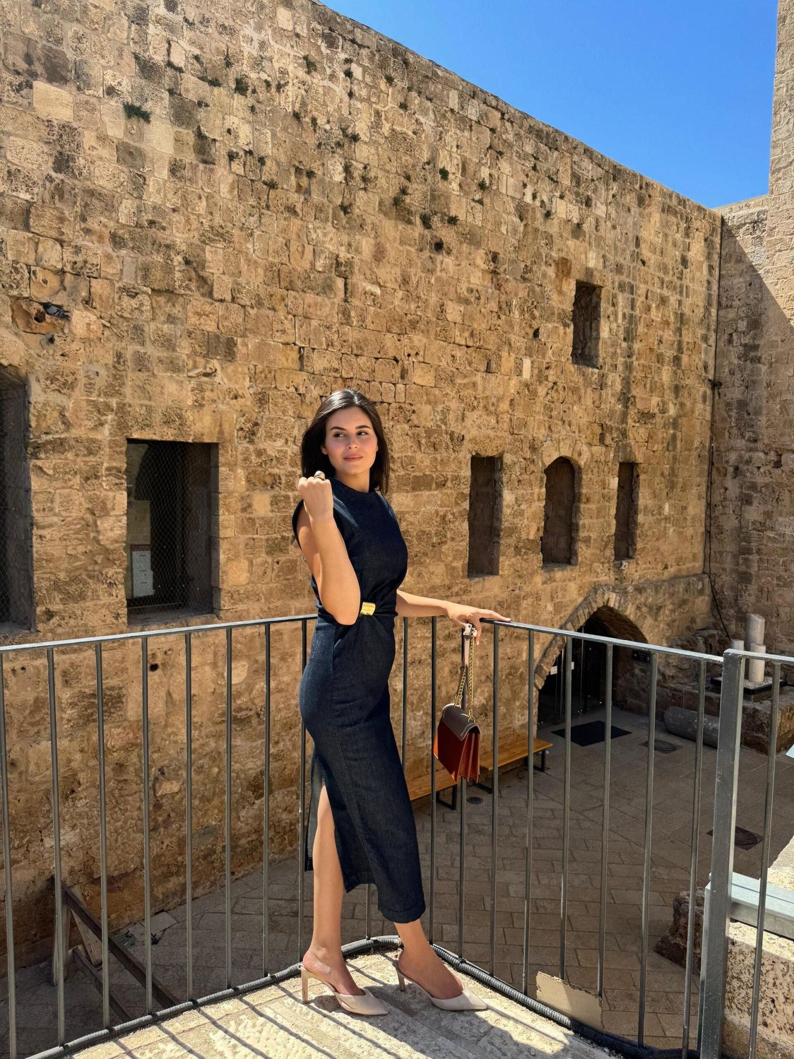 שמלת דנים בגוון כהה שמצליחה לשלב בין אלגנטיות לניחוח אורבני עדכני. גזרה מחטבת עם טוויסט מחמיא במותן, בלי שרוולים, באורך מידי קלאסי – יוצרת מראה שיקי, מתוחכם ונשי במיוחד. הלוק מושלם לדייט יוקרתי, לאירוע קיץ או ליציאה עם סטייל בלתי מתאמץ. משלבת סטייל נועז עם נגיעה של אצילות.