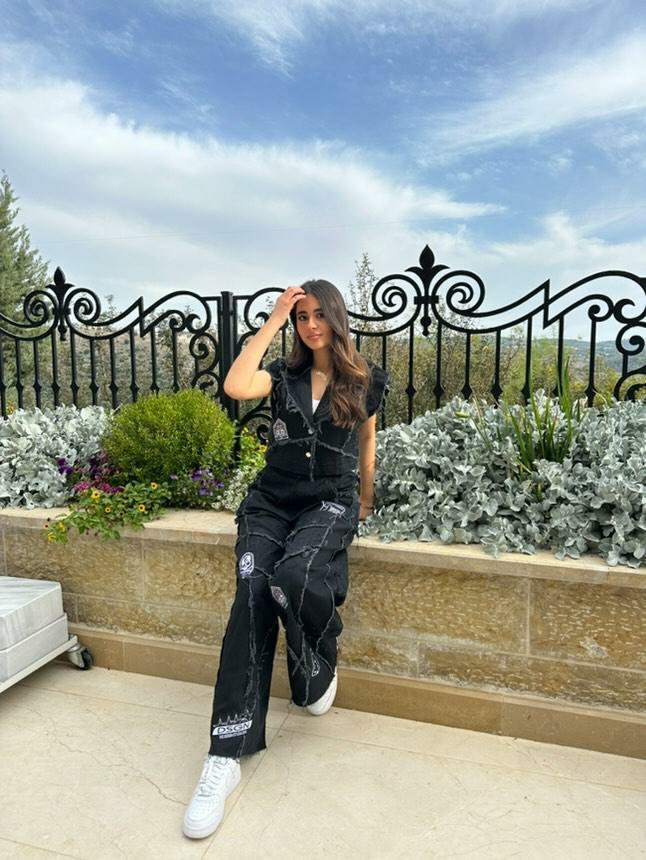 סט ג'ינס שחור עם טקסטורות והדפסים אורבניים. לוק קז'ואלי עם טוויסט של רחוב, מיוחד לבחורות שמחפשות סטייל שלא רואים בכל מקום.